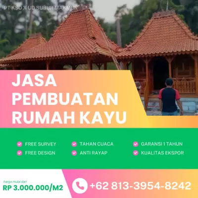 Pembangunan rumah kayu adalah langkah besar yang membutuhkan perencanaan yang baik dan pemilihan jasa pembuatan yang sesuai.Dengan memilih penyedia jasa yang berpengalaman, Anda dapat memastikan bahwa rumah kayu Anda tidak hanya indah dan unik, tetapi juga tahan lama dan berfungsi sebagai investasi yang berharga.Rumah kayu memberikan keindahan dan kehangatan alami yang unik, menjadikannya tempat tinggal ideal untuk mereka yang menginginkan hunian ramah lingkungan dan berkarakter.